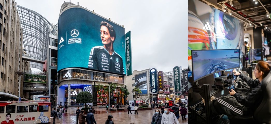 與此同時,阿迪達(dá)斯南京東路品牌中心全面煥新,設(shè)置梅賽德斯車隊及奧迪車隊2026賽季聯(lián)名系列專區(qū),店內(nèi)配備F1賽車模擬器與主題拍照裝置。從產(chǎn)品陳列到互動體驗,門店試圖成為車迷打卡的實體據(jù)點。