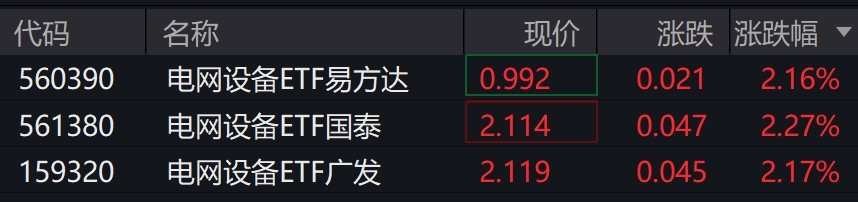 受盤面影響,電網(wǎng)設(shè)備相關(guān)ETF漲超2%。