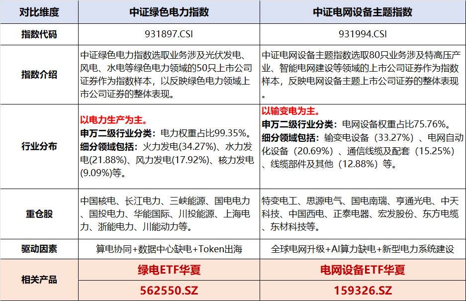 綠電ETF華夏(562550):同指數(shù)規(guī)模最大,跟蹤中證綠色電力指數(shù),申萬二級(jí)行業(yè)中電力含量超99%,為全市場(chǎng)最“純”電力相關(guān)指數(shù),一鍵打包電力龍頭企業(yè),不僅包括以水電、風(fēng)電及光伏發(fā)電為代表的清潔能源企業(yè),同時(shí)也納入了火電、核電等能源轉(zhuǎn)型樣本。
