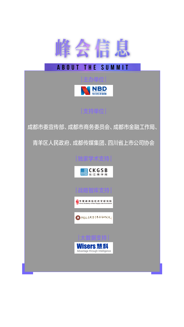 中國上市公司領(lǐng)袖峰會是由每日經(jīng)濟新聞主辦的中國資本市場最具影響力的大型交流平臺,最重要的年度盛會之一,峰會自2011年發(fā)起,迄今已經(jīng)連續(xù)舉辦五屆。2017年第六屆中國上市公司領(lǐng)袖峰會將以“新時代 新機遇 新?lián)?dāng)”為主題,匯聚中國數(shù)百家優(yōu)秀上市公司、上百家券商基金機構(gòu),邀請政府官員、商界領(lǐng)袖、學(xué)界專家齊聚成都,共話新時代的財經(jīng)宏圖與資本愿景。