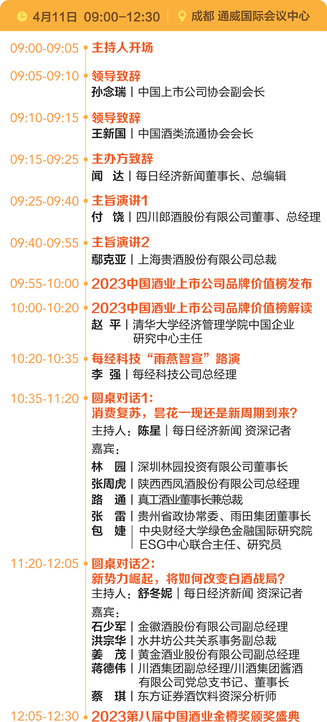 2023年,酒業(yè)還將出現(xiàn)哪些新的重要變化?值第108屆全國糖酒會(huì)4月在成都啟幕之際,4月11日,由每日經(jīng)濟(jì)新聞主辦的“2023第八屆中國酒業(yè)資本論壇”將盛大舉行,活動(dòng)將匯聚酒行業(yè)、資本圈等眾多大咖,以財(cái)經(jīng)視角聚焦中國酒業(yè)市場新機(jī)遇,以資本力量擘畫中國酒業(yè)新藍(lán)圖。與此同時(shí),由每日經(jīng)濟(jì)新聞主辦評選的“中國酒業(yè)金樽獎(jiǎng)”;由每日經(jīng)濟(jì)新聞聯(lián)合清華大學(xué)經(jīng)管學(xué)院中國企業(yè)研究中心發(fā)布的“中國酒業(yè)上市公司品牌價(jià)值榜”,都將推動(dòng)中國酒業(yè)的高質(zhì)量發(fā)展。