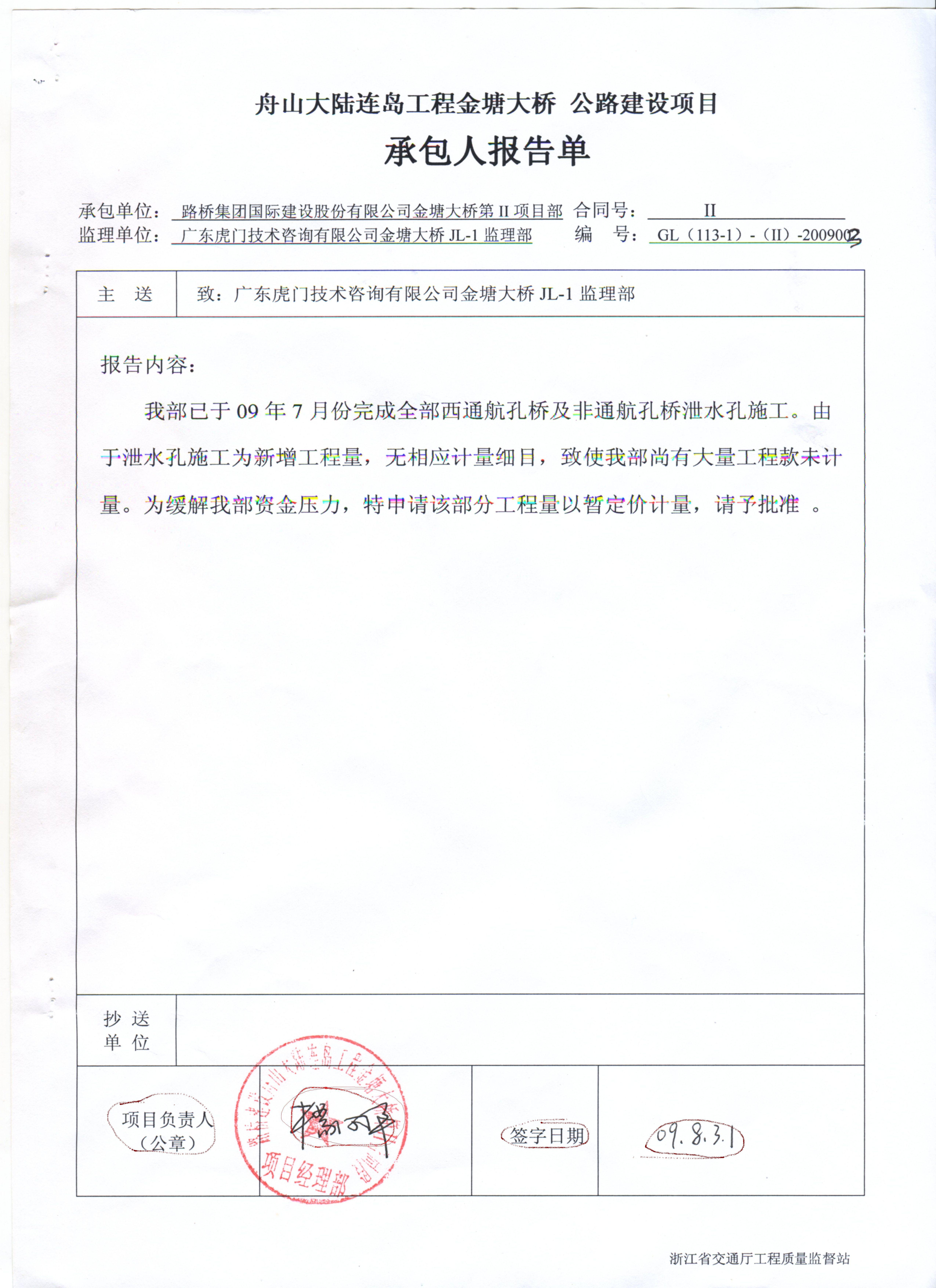 7月29日,舉報人楊之君(化名)在國內(nèi)某知名論壇上發(fā)布了浙江舟山跨海大橋存在非法轉(zhuǎn)包、偽造簽名等問題的舉報,并附上大量的大量的原始資料,該貼立即引起廣泛關(guān)注,更新甚至超過達到十頁,三天之后,舉報人接受了記者近4個小時的當(dāng)面采訪。【更多】