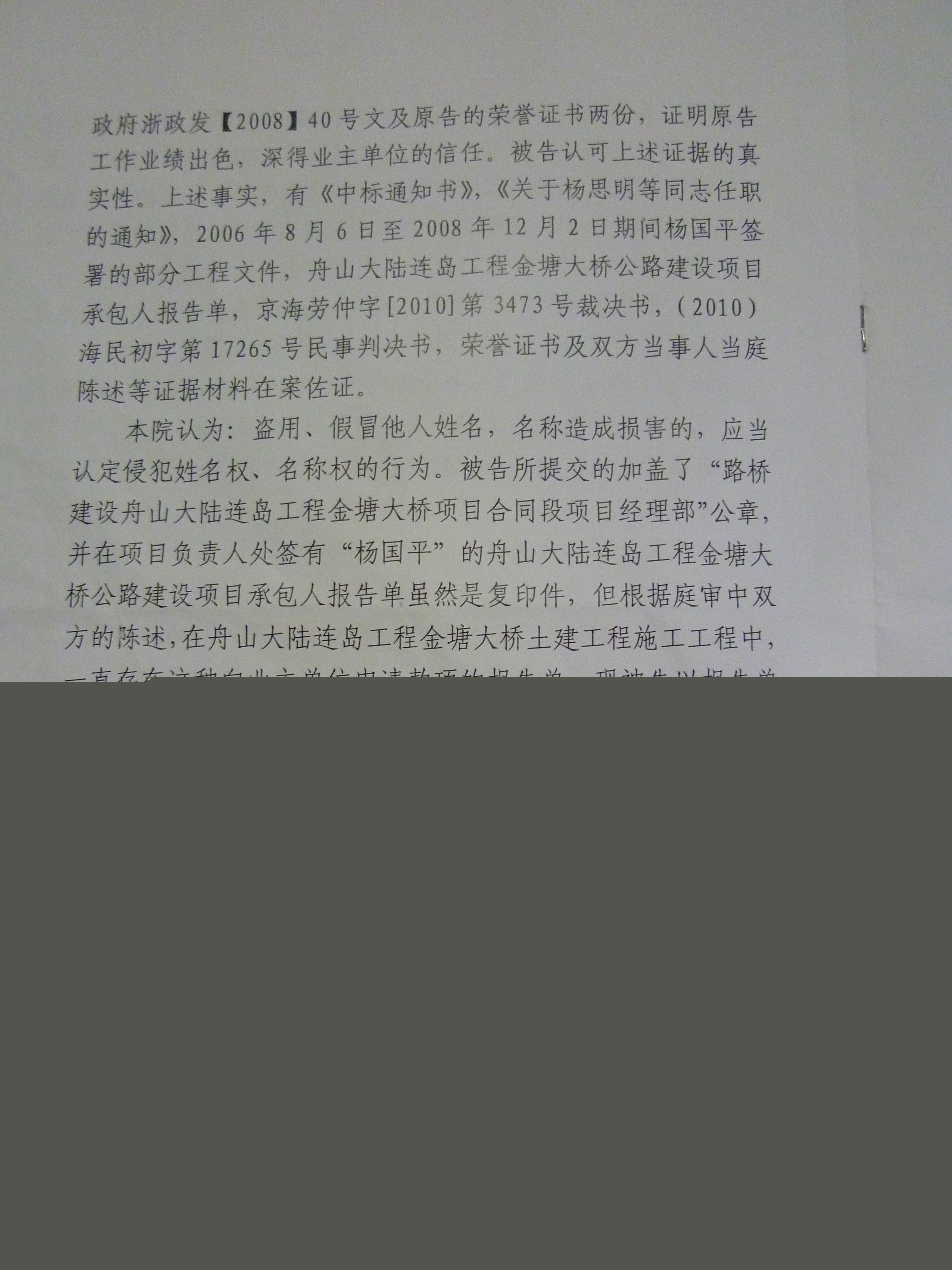 北京市海淀區(qū)人民法院民事裁決書((2010)海民初字第17265號)中指出,“金塘大橋第II合同段工程已超過路橋華東公司所能承建的工程標的額范圍。”“但該工程存在分包情形,該工程實際施工方為路橋華東。”